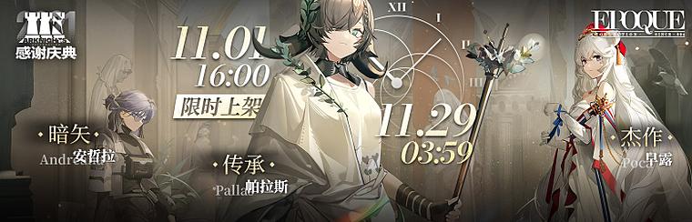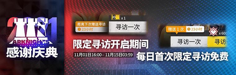 ◆新增干员【焰尾】、【蚀清】除加入【限定寻访·庆典】外,将在11月11日04:00后加入并常驻【标准寻访】卡池