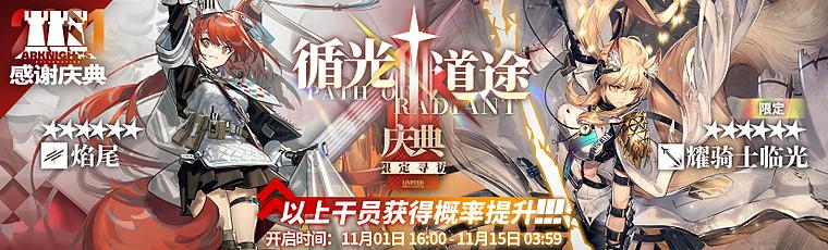 活动说明:活动期间【限定寻访·庆典】-【循光道途】寻访开启,该寻访中以下干员出现率上升