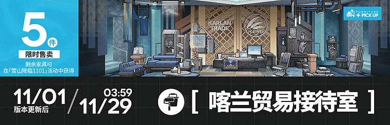 活动说明:活动期间新增活动限定家具【谢拉格游客体验中心】系列与【喀兰贸易接待室】系列