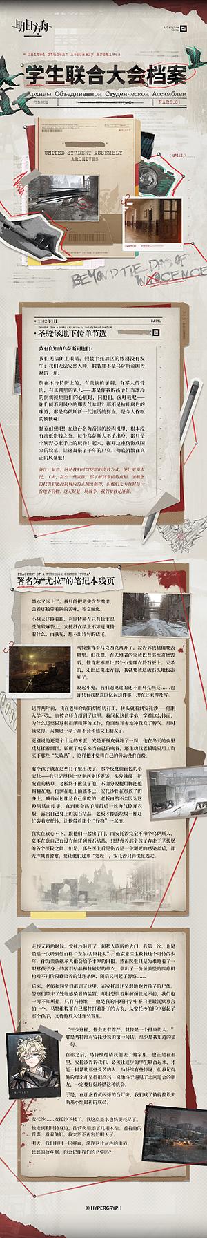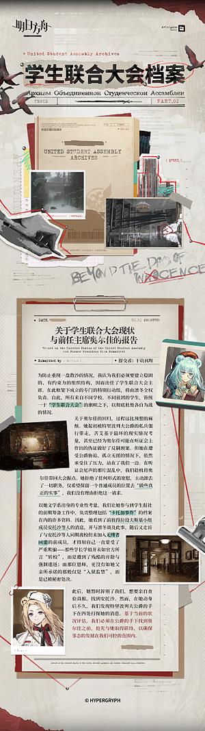 特别听证会告一段落,圣骏堡仍在品尝“卡托加事件”那苦涩的余味。然而,一纸赦令改变不了权贵们要对年轻人们施展“教育”的决心,更解决不了乌萨斯当下种种复杂的矛盾。在这风云变幻的时刻,乌萨斯学生自治团发来了她们所整理的档案。 |